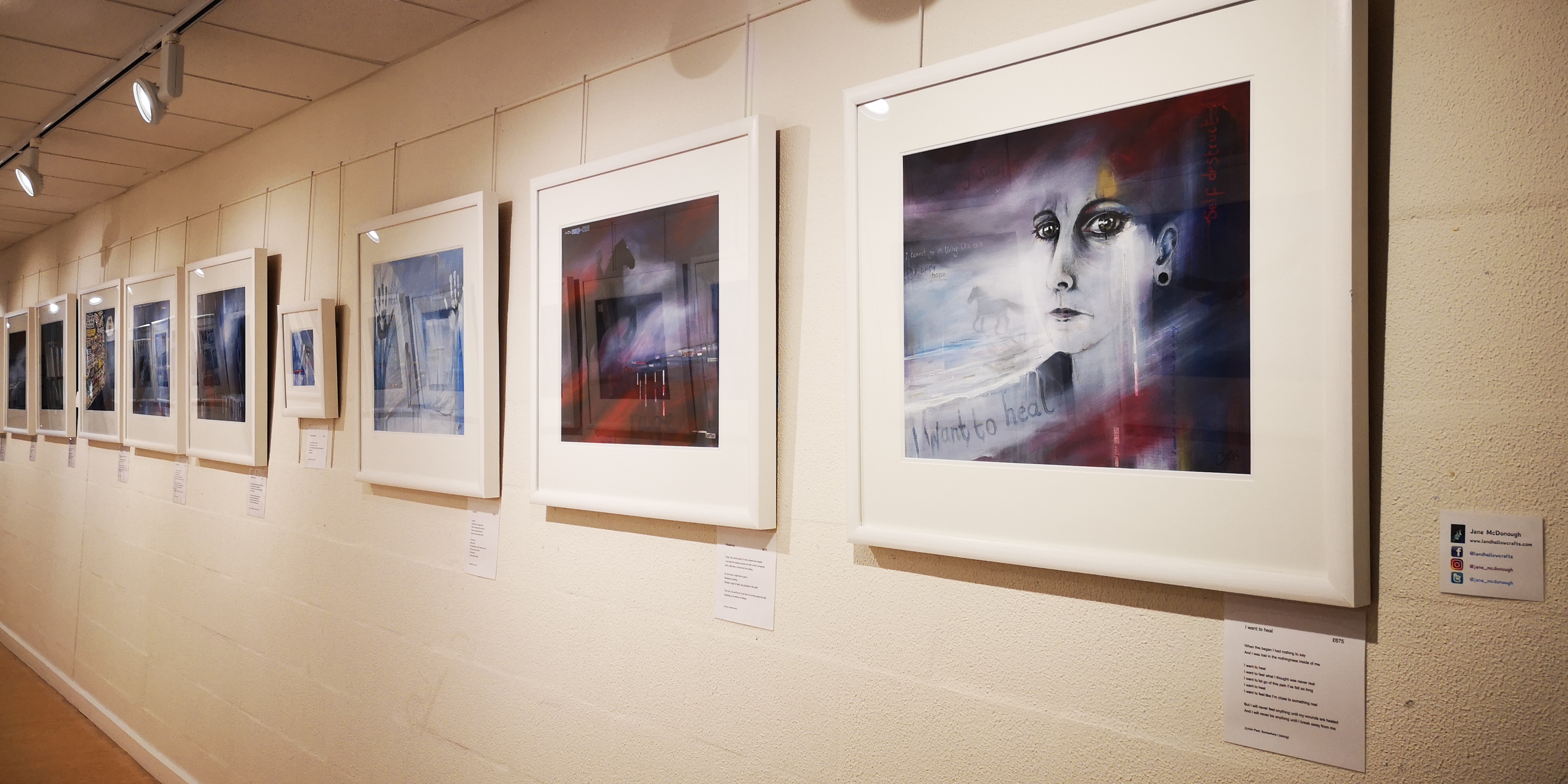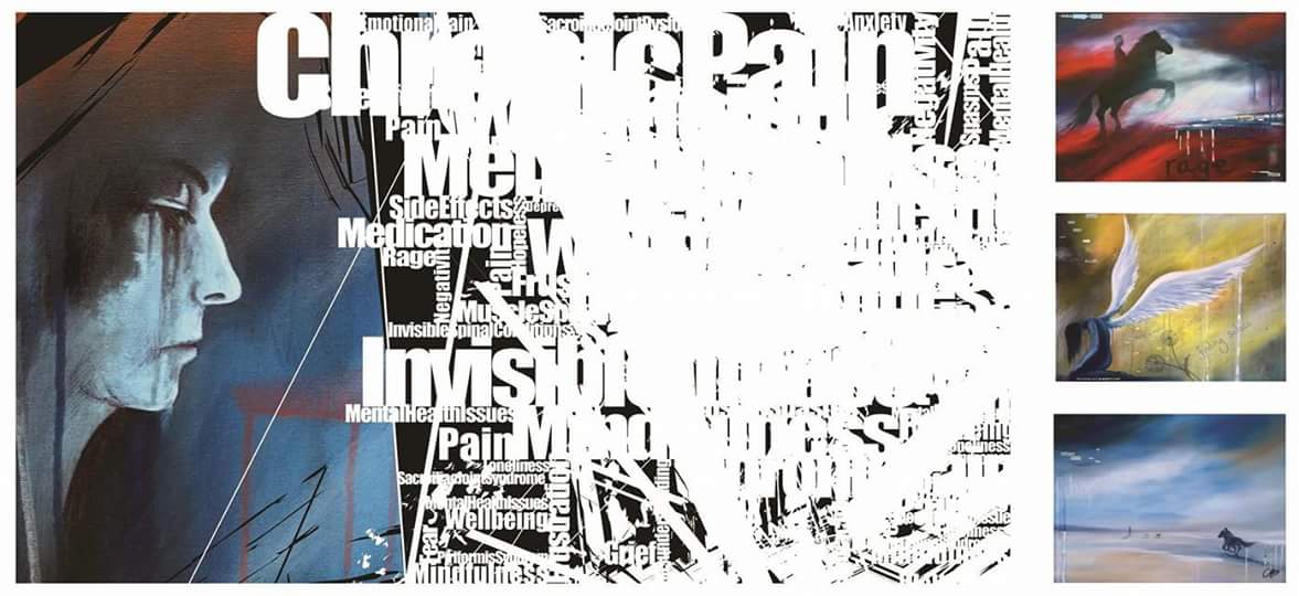 The works are very personal and tackle chronic pain, invisible health conditions, emotional pain, mental health issues, long term illness and also counselling, mindfulness and acceptance of my situation.