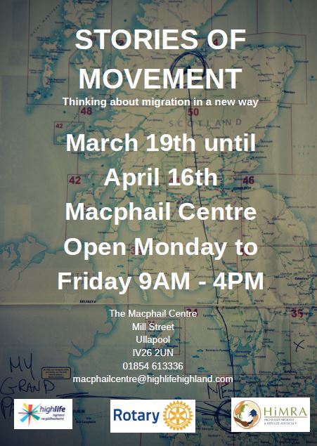 We invited people living in the Highlands to share their 'Story of Movement' with an aim to encourage the wider community to think in new ways about migration. This exhibition offers people an opportunity to reflect on the many and varied ways in which movement occurs and that, fundamentally, everyone has a story